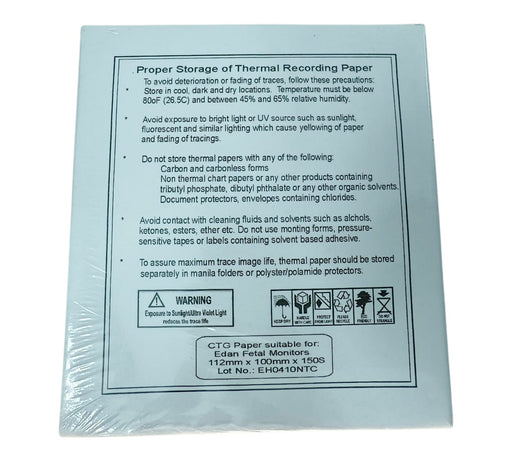 CTG Thermal Paper – 112mm Z-Fold Full Graph Paper Compatible with BPL, Edan & Maestros Fetal Monitors (Pack of 6)